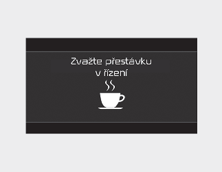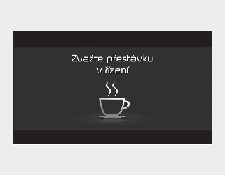 • Jakmile míra bdělosti řidiče klesne pod hodnotu 1, zobrazí se na přístrojovém panelu zpráva „Consider taking a break“ (Zvažte přestávku) a zazní varovný signál, který řidiči doporučí udělat přestávku.