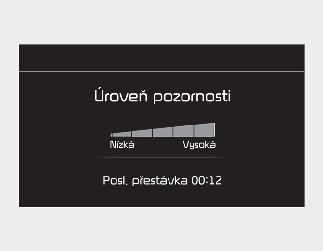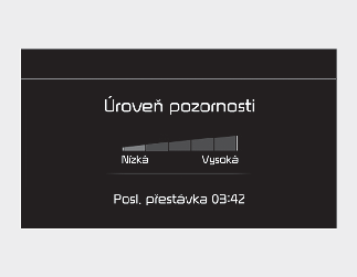 • Úroveň pozornosti řidiče se zobrazuje na stupnici 1 až 5. Nižší hodnota znamená nižší míru pozornosti řidiče.