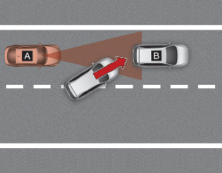 [A] : Vaše vozidlo, [B] : Vozidlo vpředu
