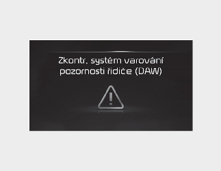Warning (DAW) system“ (Zkontrolujte systém sledování bdělosti řidiče) na přístrojové desce (po určité době zhasne) a rozsvítí