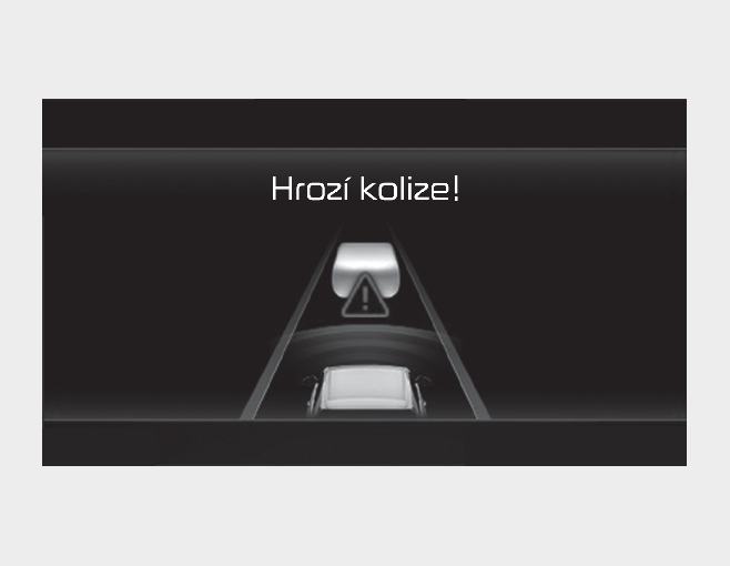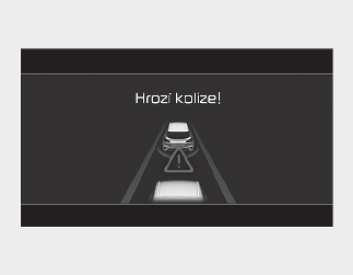 Pokud je adaptivní tempomat v provozu a riziko srážky s vozidlem jedoucím vpředu je vysoké, zobrazí se na přístrojovém panelu varovná zpráva „Collision Warning“ (Varování před srážkou) a zazní zvukový signál jako varování pro řidiče. Vždy sledujte situaci na silnici a v případě potřeby snižte rychlost jízdy sešlápnutím brzdového pedálu, abyste udržovali bezpečný odstup.
