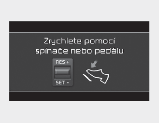 Pokud při zapnutém adaptivním tempomatu potřebujete zrychlit, sešlápněte v určitém rozsahu akcelerační pedál. Během sešlápnutí pedálu akcelerátoru o určitý rozsah bude na přístrojovém panelu blikat nastavená rychlost, úroveň odstupu a cílový odstup. Pokud však není pedál akcelerátoru dostatečně sešlápnutý, vozidlo může zpomalovat.