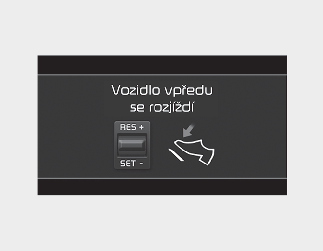 Po zastavení s aktivovaným systémem adaptivního tempomatu funkce upozornění na rozjetí vozidla vpředu varuje řidiče, že vozidlo vpředu se rozjelo.