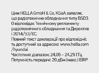 Radio-frekvenční součásti (Zadní rohové radary) splňují následující specifikace : (je-li součástí výbavy)