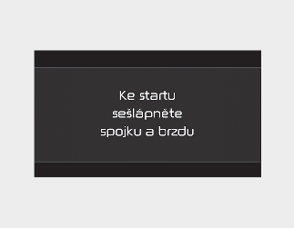 Pokud u vozidla s manuální převodovkou stisknete tlačítko ENGINE START/STOP (Nastartování/vypnutí motoru) bez sešlápnutí pedálu spojky nebo u vozidla s inteligentním manuálním řazením (iMT) bez sešlápnutí pedálu brzdy a pedálu spojky nebo u vozidla s automatickou/dvojspojkovou převodovkou bez sešlápnutí pedálu brzdy, motor se nenastartuje a tlačítko nastartování/vypnutí motoru se změní následovně: OFF → ACC → ON → OFF nebo ACC