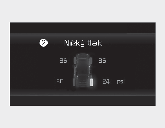 Indikátor nízkého tlaku v pneumatikách (Zobrazení na LCD displeji)