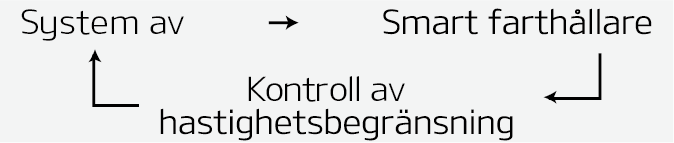 Accelerera till önskad hastighet. Hastigheten till smartfarthållaren kan ställas in på följande sätt: