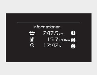 Wenn nach dem Abstellen des Motors die Fahrertür geöffnet wird oder nach dem Neustart des Motors 3 Minuten vergangen sind, werden die Fahrtinformationen zurückgesetzt.