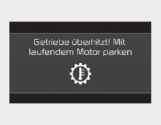In der Warnmeldung wird angezeigt, wie lange das Getriebe abkühlen muss.