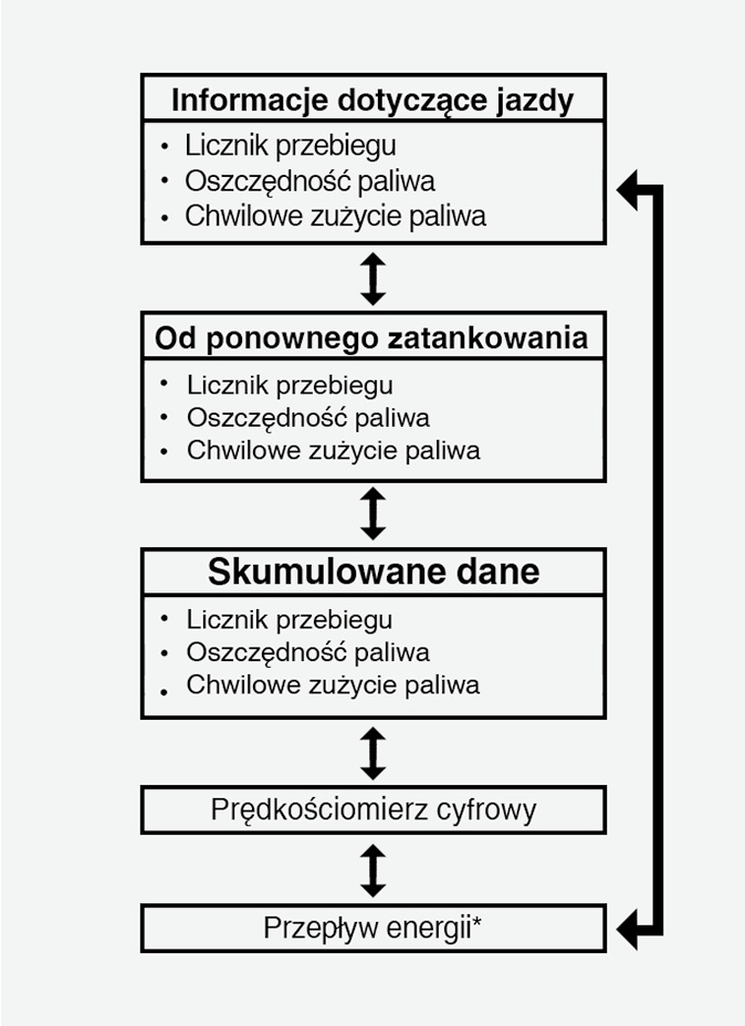 • Po zatankowaniu co najmniej 6 litrów i jeździe z prędkością ponad 1 km/h wskazanie Od ponownego zatankowania zostanie automatycznie wyzerowane.