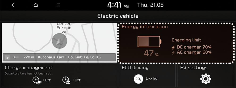 Select 'EV → Energy information' on the screen.