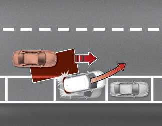 When you are driving forward out of a parking space, if Blind-Spot Collision-Avoidance Assist judges that there is a collision risk with an approaching vehicle in the blind spot, it can help avoid collision by applying the brake.