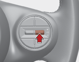 Push the (+) switch up or (-) switch down and hold it. The speed will increase or decrease to the nearest multiple of 10 (multiple of 5 in mph) at first, and then increase or decrease by 10 km/h (5 mph).