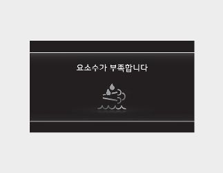 )과 함께 "요소수가 고갈되어 재시동이 불가합니다" 경고 메시지가 표시되며, 신속히 요소수를 보충하십시오. 요소수 보충 없이 주행하면 요소수 부족으로 재시동 시 시동이 걸리지 않을 수 있습니다. 주행 습관 및 도로 환경