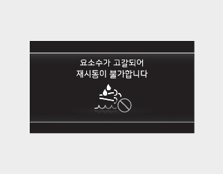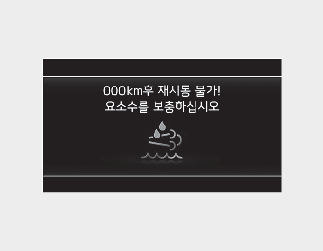 "요소수가 고갈되어 재시동이 불가합니다" 경고 메시지가 표시되면 요소수를 충분히 보충하십시오.