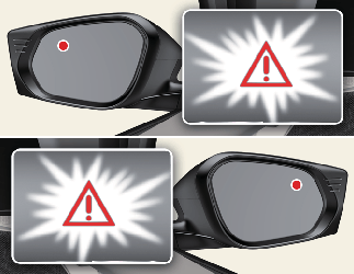 Блиматиме сигнальна лампа на зовнішньому дзеркалі заднього огляду, а на панелі приладів з’явиться попереджувальне повідомлення.