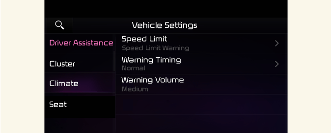 Не управляйте разделом Настройки автомобиля во время вождения. Это может отвлечь внимание и привести к аварии.