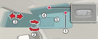 Чтобы воспользоваться зеркальцем, опустите солнцезащитный козырек вниз и откройте крышку (4).
