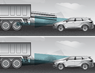 После перемещения транспортного средства на вашу полосу с соседней полосы оно не будет обнаружено датчиком, пока не окажется в пределах дальности обнаружения датчика. Система интеллектуального круиз-контроля может не сразу обнаружить транспортное средство, резко меняющее полосу движения. Во время вождения будьте внимательны, следите за дорожными условиями и безопасно ведите автомобиль. При необходимости выжмите педаль тормоза, чтобы уменьшить скорость движения для поддержания безопасного расстояния.