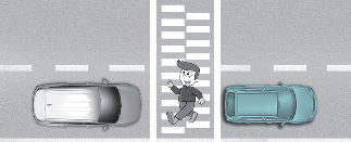Когда ваш автомобиль удерживает дистанцию до движущегося впереди транспортного средства, всегда обращайте внимание на пешеходов.