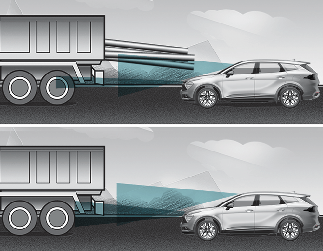 Если это произойдет, система предотвращения лобового столкновения не всегда может выдавать предупреждение водителю и применять торможение или автоуправление (при наличии). Постоянно следите за условиями дорожного движения вокруг автомобиля.