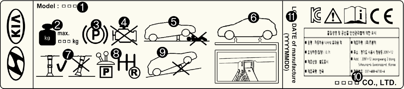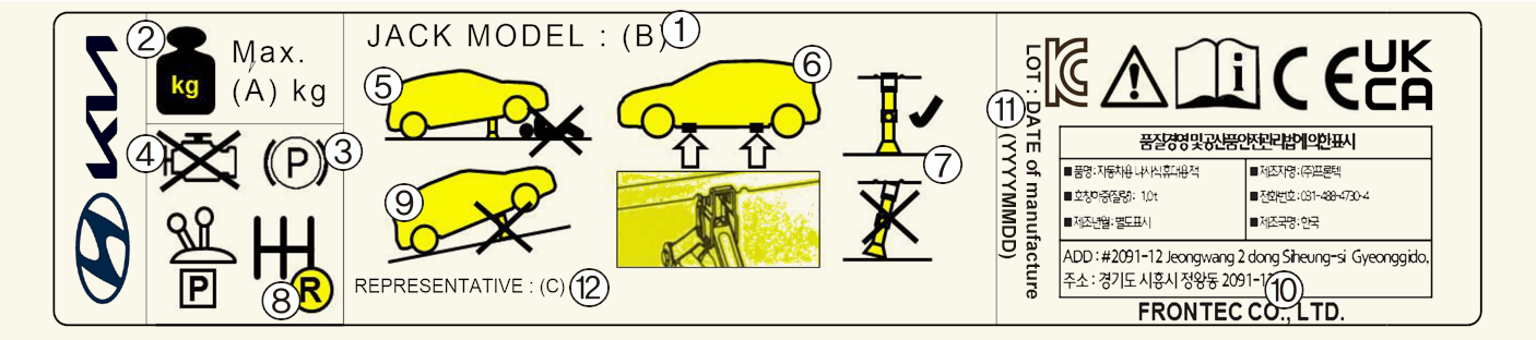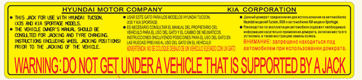 * Фактическая табличка на домкрате в автомобиле может отличаться от изображенной на рисунке. Подробнее см. на наклейке, прикрепленной к домкрату.
