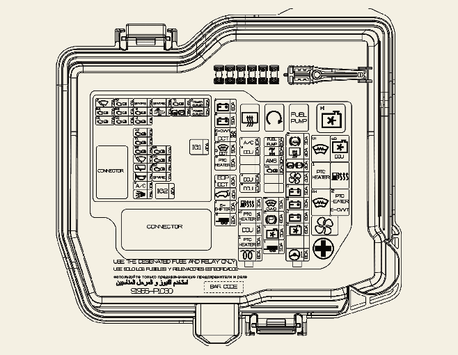 Панель с предохранителями в моторном отсеке (крышка клемм аккумулятора)