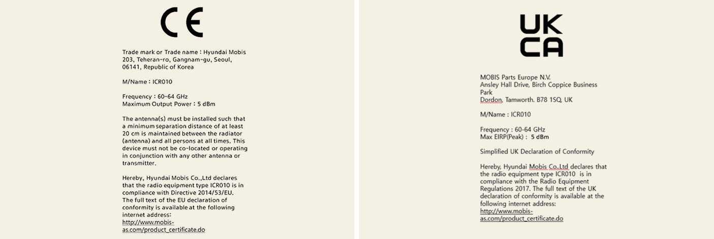 Conformiteitsverklaring De met radiofrequenties werkende componenten (ROA-radarsensor) voldoen aan: Voor Europa en landen met een EG-certificering OMV033033L_2