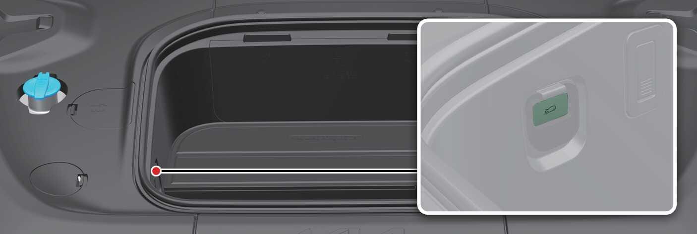 Wanneer de motorkap wordt geopend met een smart key of digitale sleuteltoepassing, kan de interieurlamp in de bagageruimte aan de voorzijde aangaan, afhankelijk van de status van de deurvergrendelingsfunctie voor interieurverlichting.