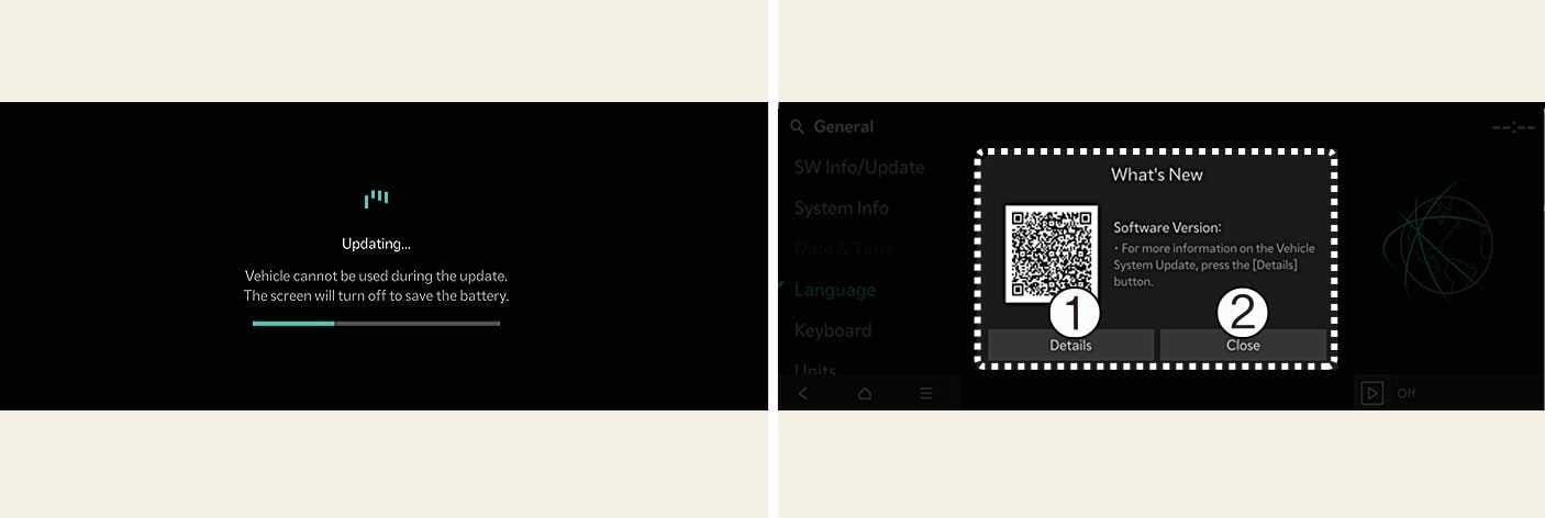 Nadat de update is voltooid, kan deze nieuwe functies of verbeteringen bieden. Raadpleeg voor meer informatie de pagina "Over-The-Air Software Update" op de Kia-webpagina, scan de QR-code op het infotainmentscherm of raadpleeg de gebruikershandleiding in het .