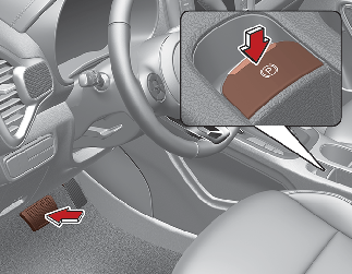 For din sikkerhed skal du trykke på bremsepedalen og løsne håndbremsen manuelt med EPB-kontakten, når du kører ned ad bakke eller når du tager sikkerhedskopi af køretøjet.