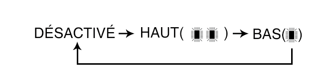 À chaque fois que vous appuyez sur le commutateur, le réglage de la température du siège est modifié comme suit :