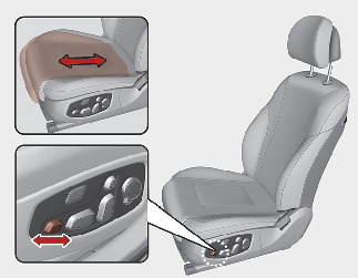 Переднее сиденье регулируется при помощи переключателей, расположенных с внешней стороны подушки сиденья. Перед началом движения отрегулируйте положение сиденья таким образом, чтобы можно было легко доставать до рулевого колеса, педалей и переключателей на панели приборов.