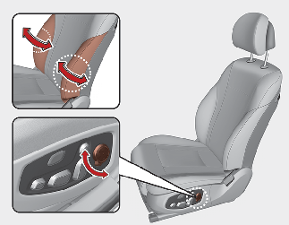 Переведите переднюю часть регулирующего переключателя вверх, чтобы поднять переднюю часть подушки сиденья, или вниз, чтобы опустить ее. Переведите заднюю часть регулирующего переключателя вверх, чтобы поднять заднюю часть подушки сиденья, или вниз, чтобы опустить ее. Отпустите переключатель после того, как сиденье достигнет требуемого положения.