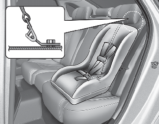 Подсоедините якорный ремень к якорному креплению, затем затяните якорный ремень в соответствии с инструкциями производителя детского сиденья, чтобы прикрепить детское сиденье к сиденью автомобиля.