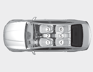 Для пассажирского сиденья (сиденье номер 1) автомобилей с правосторонним управлением используйте информацию для сиденья номер 3