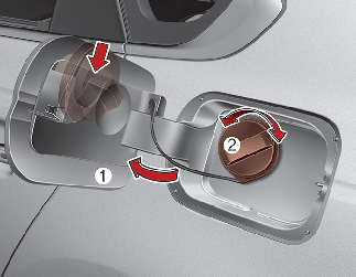 Чтобы снять крышку, поверните крышку горловины топливного бака (2) против часовой стрелки.