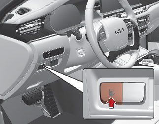 Лючок горловины топливного бака следует открывать изнутри автомобиля, нажимая кнопку открытия лючка горловины топливного бака.