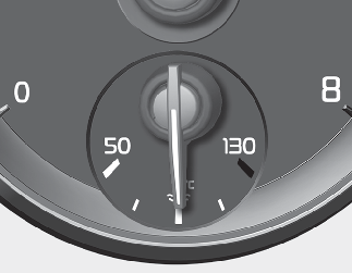 Если указатель датчика перемещается за пределы нормального диапазона значений (между 50–130) по направлению к положению «130», это указывает на перегрев, который может привести к повреждению двигателя.