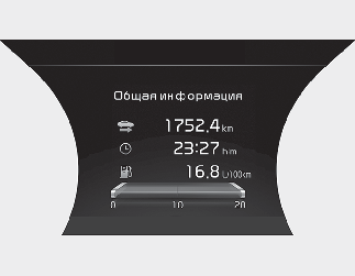 На дисплее отображается общее пройденное расстояние, средняя эффективность использования топлива и общее время в пути.