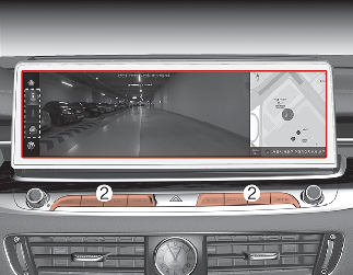 Нажмите одну из кнопок информационно-развлекательной системы (2); вид сзади при движении будет выключен.