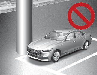 Эффективность работы интеллектуальной системы дистанционной парковки может снизиться или может произойти столкновение, если рядом с парковочным местом находится узкий столб, круглая тумба, квадратный столб или столб с окружающими его объектами (например, пожарный гидрант и т.п.). Водителю следует припарковать автомобиль самостоятельно.