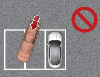 Если при использовании интеллектуальной системы дистанционной парковки другой автомобиль находится только с одной стороны, ваш автомобиль может пересечь парковочную линию во избежание столкновения.