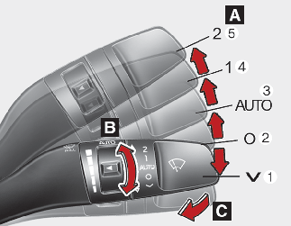 A: Регулятор скорости переднего стеклоочистителя (передний)