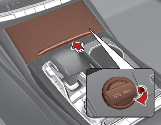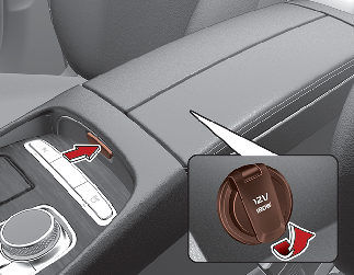 При использовании передней розетки питания вы можете закрыть крышку центральной консоли после вытягивания провода через передний угол правой стороны крышки консоли. (Автомобильное зарядное устройство и кабель не входят в комплект нового автомобиля.)