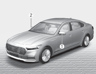 [1], [2]: камера кругового бокового обзора (камера, установленная в нижней части зеркала)
