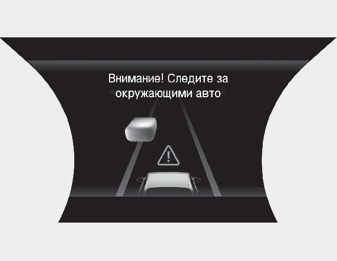 В перечисленных ниже условиях на приборной панели отобразится предупреждение «Watch for surrounding vehicles» (Следите за окружающими транспортными средствами) и прозвучит звуковое сообщение для оповещения водителя о дорожных условиях по ходу движения.