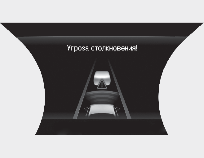 Если работает система интеллектуального круиз-контроля и существует высокий риск столкновения с движущимся впереди транспортным средством, на приборной панели отобразится предупреждающее сообщение «Collision Warning» (Угроза столкновения) и прозвучит звуковое сообщение для оповещения водителя. При движении необходимо постоянно следить за дорожной ситуацией впереди и в случае необходимости использовать педаль тормоза для снижения скорости с целью поддержания безопасной дистанции.