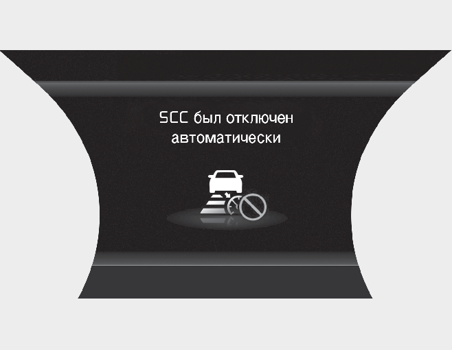 Если система интеллектуального круиз-контроля временно отключена, на приборной панели появится предупреждающее сообщение «Smart Cruise Control canceled» (Система круиз-контроля отключена) и прозвучит звуковое сообщение для оповещения водителя.