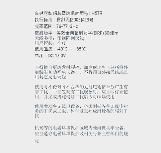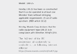 Радиочастотные компоненты (передний радар) соответствуют перечисленным ниже требованиям.